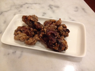 黒にんにく入りの「うまみたれ」にじっくり漬け込んでから揚げてあるので、見た目は黒っぽく濃い目の揚げ上がりで、旨味たっぷり で味もかなり濃い目。でも、にんにく特有のニオイは全然ありません。