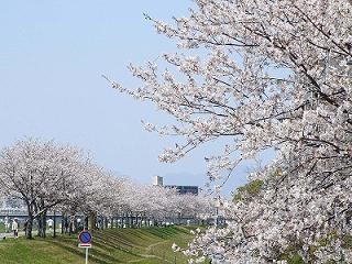 天満橋辺り~高松橋、宮崎大橋、平和台大橋まで桜並木が続きます。ウォーキングをしながら、桜を見ることができます。