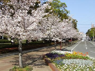 宮崎公立大学周辺~文化公園南駐車場までの道路沿いに桜が咲きほこります。