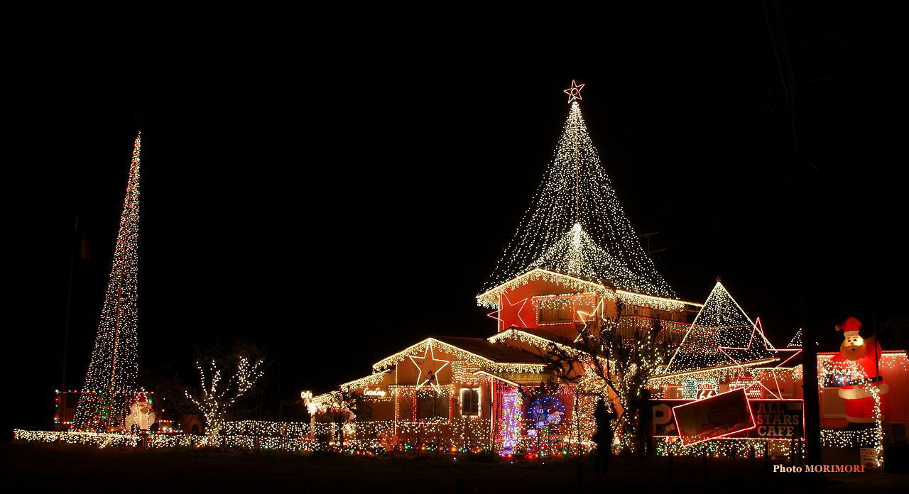 ここは各自商店街のお店屋さんたちが頑張って造りあげたイルミネーションです!